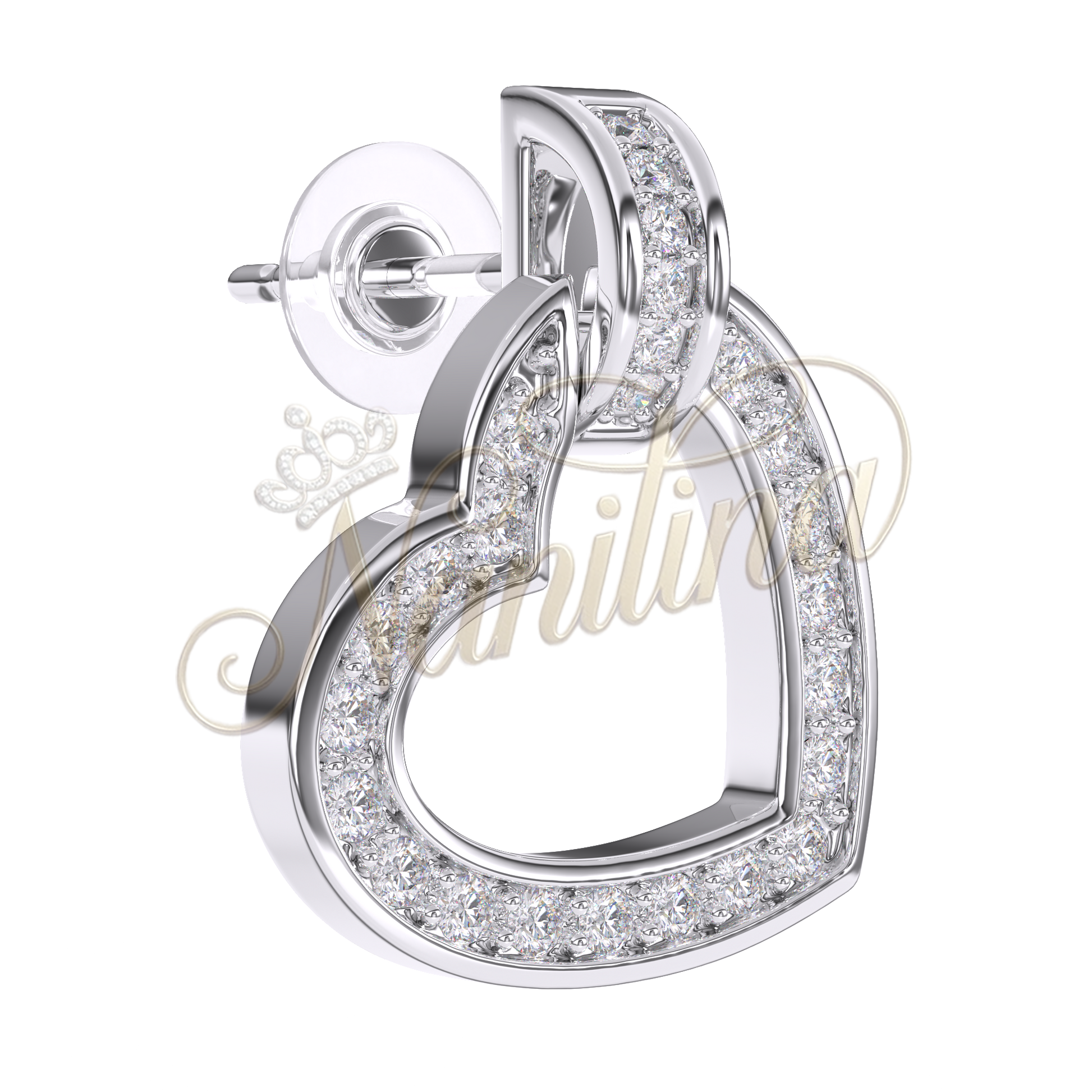 Romantisme sophistiqué avec ces boucles d'oreilles clous en forme de cœur ornées de cristaux et strass scintillants. Finition or avec détails noirs pour un contraste élégant.